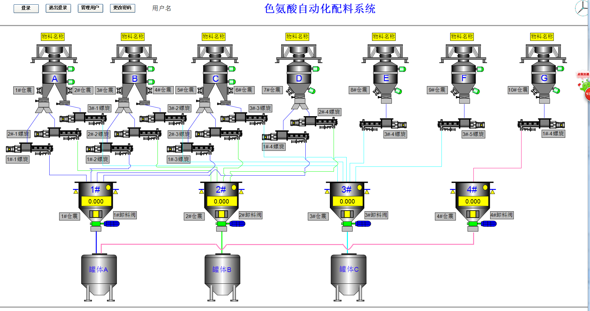 在大宗化工原料生產中,自動配料系統則解決了傳統人工配料效率低下、勞動強度大的問題。大宗化工生產通常需要處理噸級以上的原料,人工搬運、計量不僅耗時耗力,還存在極大的安全隱患。自動配料系統可與輸送機、料倉等設備無縫對接,實現原料的自動化輸送與精準計量,整個過程無需人工干預,有效降低了工人的勞動強度,同時避免了人工接觸易燃易爆、有毒有害化工原料的風險。此外,系統能夠實現連續化配料作業,配合后續的反應釜等設備形成閉環生產,大幅提升了整條生產線的產能。